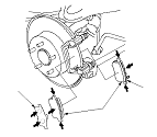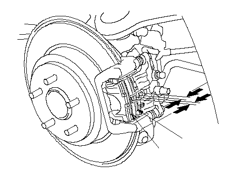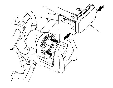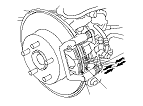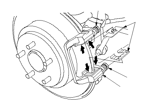 Нанесите смазку Molykote M77 на фиксаторы в местах их соприкосновения (указаны стрелками) напротив скобы суппорта.