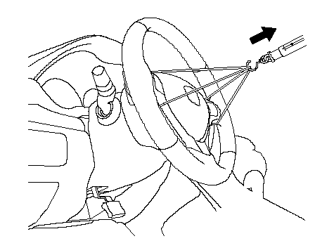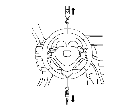 Закрепите пружинные весы в самой высокой точке рулевого колеса и установите рулевую колонку в нижнее положение.