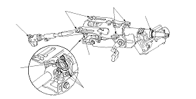 Убедитесь, что шариковые подшипники (В) и рулевые шарниры (C) рулевой колонки нормально перемещаются и не имеют люфтов. Если в каком-нибудь подшипнике обнаружен большой люфт, замените блок рулевой колонки в сборе.