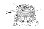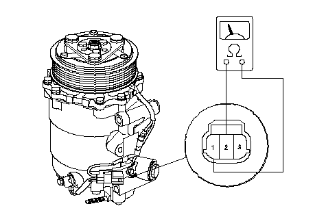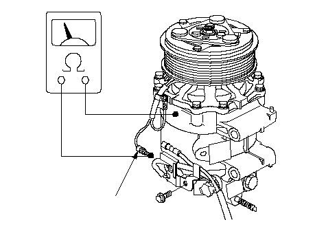 Разъедините разъем (А) катушки муфты. Измерьте сопротивление катушки муфты. Если сопротивление не соответствует норме,