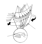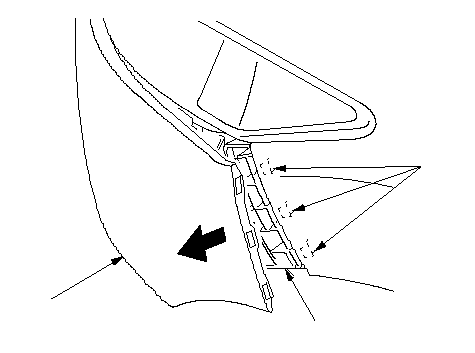 Потяните передний бампер (А) около колесных арок, чтобы вынуть его из крючков (В) (в трех местах) на боковых разделителях (С).