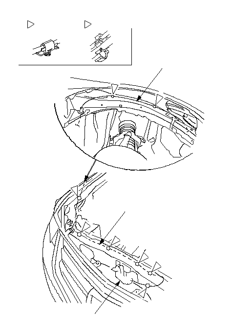 Снимите втулку (С) с кузова, затем снимите трос открывателя капота. Будьте внимательны, чтобы не перекрутить трос.