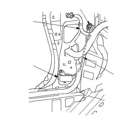 Автомобиль с ЛРК: При установке троса открывателя под панелью приборов просуньте трос над жгутом проводов "массы" (D).