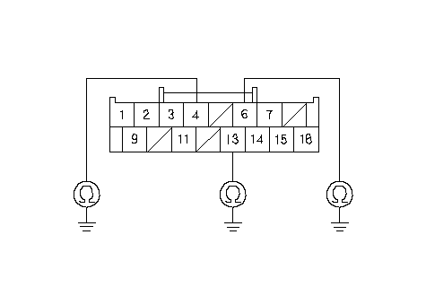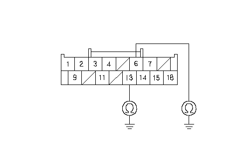 Отсоедините 3Р разъем датчика хода задней подвески, затем проверьте неразрывность цепи между клеммой № 13 16Р разъема блока управления регулировкой направления фар и "массой".