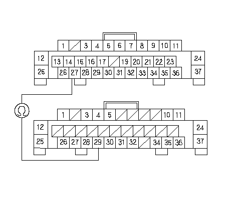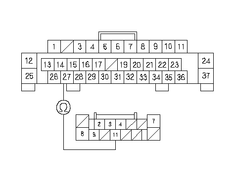 Проверьте неразрывность цепи между клеммой № 27 37Р разъема мультиплексного блока управления дверьми и клеммой № 11 14Р разъема блока управления люком крыши.