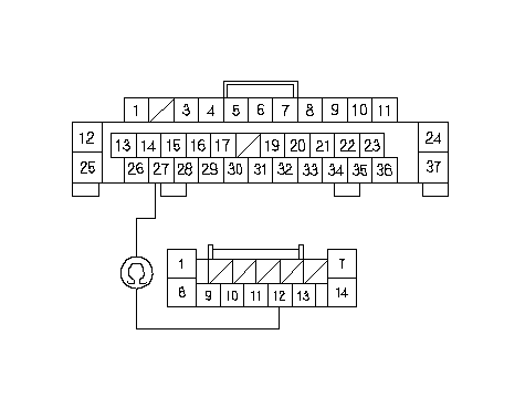 Отсоедините 37P разъем мультиплексного блока управления дверьми.