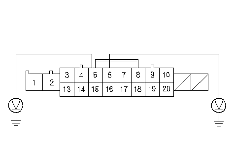 Измерьте напряжение в цепи между "массой" и клеммами № 5 и № 6 разъема Р (20P) блока предохранителей/реле под панелью приборов со стороны водителя по отдельности.