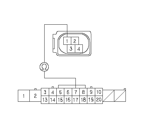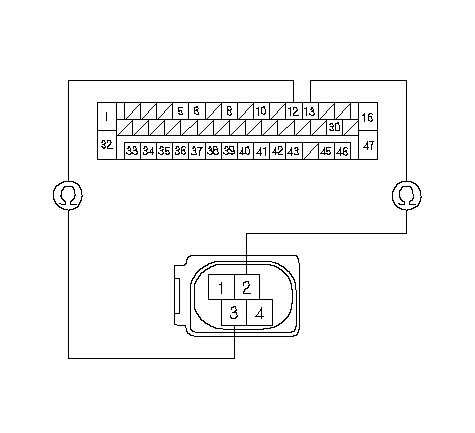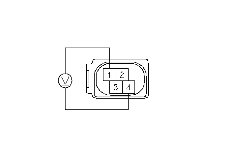 Измерьте напряжение между клеммами № 1 и № 4 4Р разъема датчика угловой скорости и поперечного ускорения автомобиля.