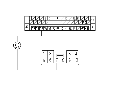 Проверьте непрерывность соединения между клеммой № 35 разъема 47Р блока управления-модулятора VSA и клеммой № 7 разъема D (10P) блока реле/предохранителей моторного отсека.