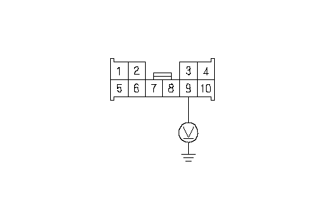 Измерьте напряжение между клеммой № 9 D (10P) разъема блока реле/предохранителей моторного отсека и "массой" кузова.