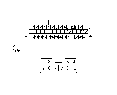 Проверьте непрерывность соединения между клеммой № 6 разъема 47Р блока управления-модулятора VSA и клеммой № 8 разъема D (10P) блока реле/предохранителей моторного отсека.
