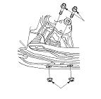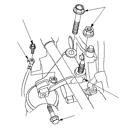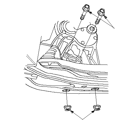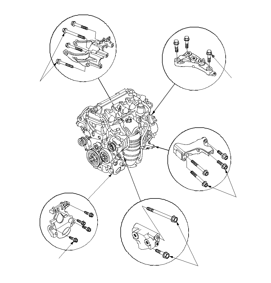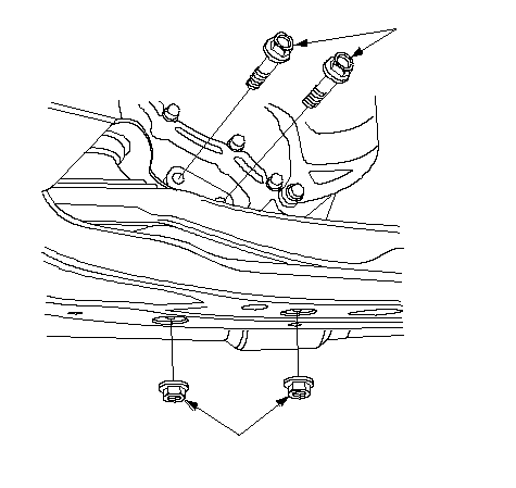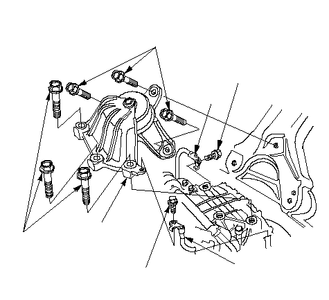 ПРИМЕЧАНИЕ: Установите обратно крепежные болты и гайки в указанной последовательности. Несоблюдение данной последовательности может вызвать повышенный уровень шума и вибраций и привести к снижению срока службы крепления двигателя.