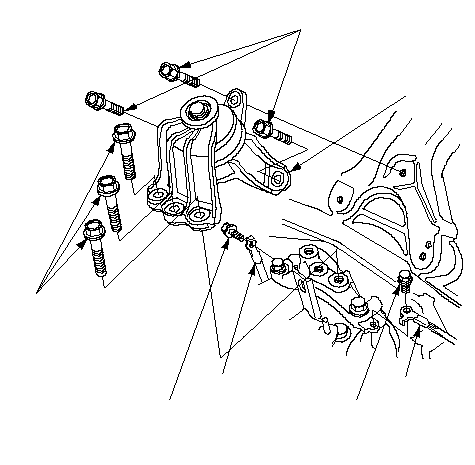 Установите нижние крепления автоматической трансмиссии.