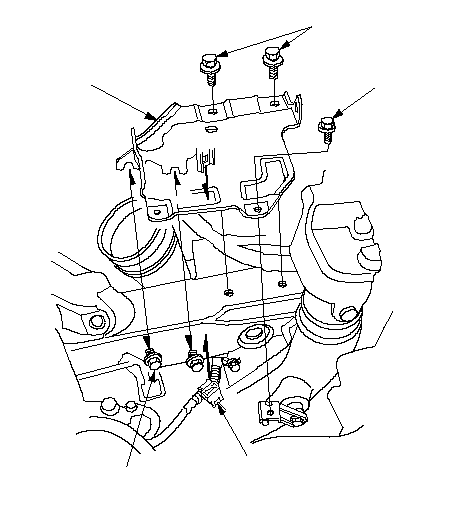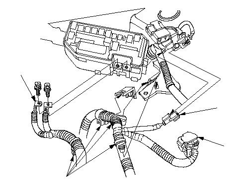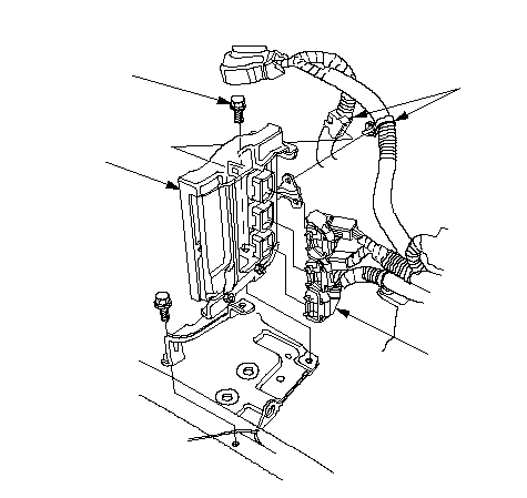 Установите скобу (А) в сборе модуля управления двигателем (ECM)/модуля управлением силовым агрегатом (PCM).