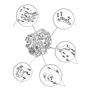 Отсоедините комплект для подъема двигателя в наклонном положении от двигателя.