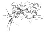 Установите верхний шланг радиатора (А), нижний шланг радиатора (В) и шланги отопителя (С).
