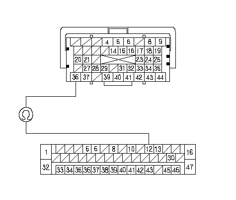 Проверьте непрерывность соединения между клеммами А36 разъема блока РСМ и клеммой № 12 разъема 47Р блока модулятора-управления VSA.
