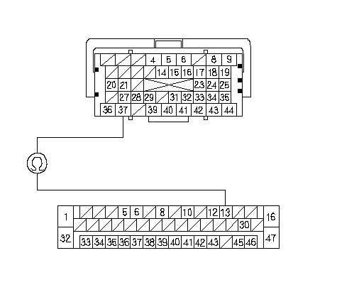 Проверьте непрерывность соединения между клеммами А37 разъема блока РСМ и клеммой № 13 разъема 47Р блока модулятора-управления VSA.
