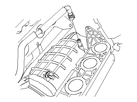 Снимите шланг (А) системы положительной вентиляции картера (PCV), затем снимите впускной коллектор с автомобиля (В).