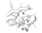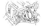 Снимите держатель жгута (Е) и скобу хомута жгута проводов (F).