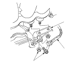 Снимите шланг (А) бачка абсорбера паров топлива (EVAP) и вакуумный шланг тормозного усилителя (B).