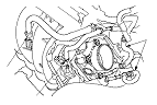 Отсоедините шланги (С) перепуска охлаждающей жидкости и заткните их.