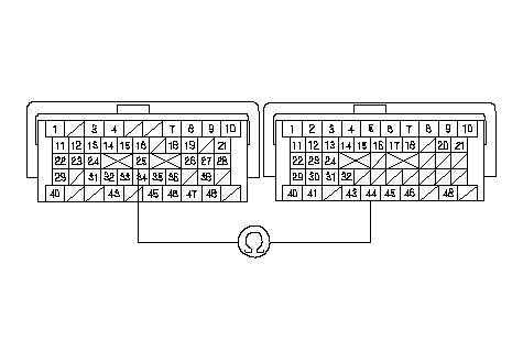 Измерьте сопротивление между клеммами B25 и C44 разъема модуля РСМ.