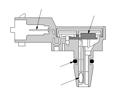 Датчик MAF содержит нить накала и терморезистор. Он расположен во впускном воздушном канале. Сопротивление нити накала и терморезистора меняется в зависимости от температуры впускного воздуха и расхода воздуха. Цепь регулирования в датчике MAF контролирует ток для поддержания установленной температуры нити накала. Цепь регулирования преобразует ток в напряжение, которое подводится к ЕСМ.