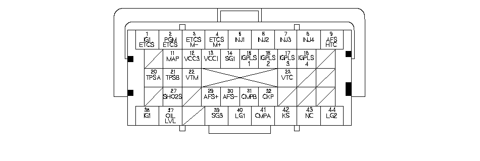 Входы и выходы блока ЕСМ на разъеме B (○) (44-контактном)