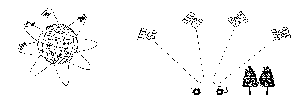 Глобальная система определения местоположения (GPS) позволяет навигационной системе определять текущее положение автомобиля, используя электрические волны, транслируемые спутниками, находящимися на орбитах вокруг Земли. Спутники транслируют сигнал идентификации спутника, информацию об орбите, сигнал передачи времени и другую информацию. Когда приемное устройство GPS принимает электрические сигналы от трех и более спутников одновременно, оно рассчитывает положение автомобиля на основании расстояния до каждого сателлита и положения сателлитов на их соответственных орбитах.