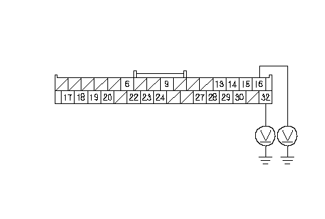 Измерьте напряжение в цепи между клеммами № 16 и № 32 32Р разъема модуля управления приборами и "массой" по отдельности.