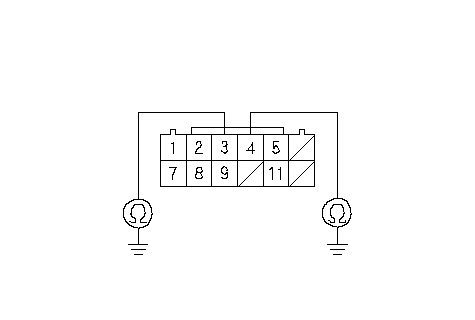 Проверьте неразрывность цепи между клеммами № 4 (UNLOCK) и № 3 (LOCK) разъема Е (12P) блока предохранителей/ реле под панелью приборов и "массой" кузова по отдельности.