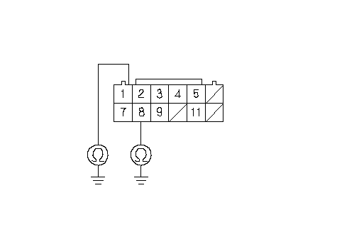 Проверьте неразрывность цепи между клеммами № 8 (LOCK) и № 1 (UNLOCK) разъема Е (12P) блока предохранителей и реле под панелью приборов и "массой" кузова по отдельности.
