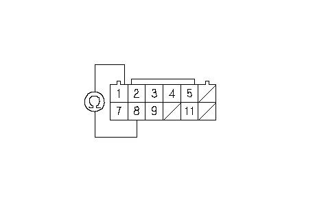 Проверьте неразрывность цепи между клеммами № 8 (LOCK) и № 1 (UNLOCK) разъема Е (12P) блока предохранителей и реле под панелью приборов.