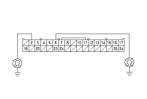 Проверьте неразрывность цепи между клеммой № 2 и № 6 разъема M (34P) блока предохранителей и реле под панелью приборов и "массой" кузова по отдельности.