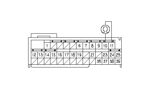 Измерьте сопротивление между клеммами № 10 и № 11 разъема В (39Р) блока SRS. Сопротивление должно быть 0 - 1,0 Ω.