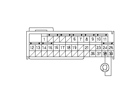 Измерьте сопротивление между клеммами № 24 и № 25 разъема В (39Р) блока SRS. Сопротивление должно быть 0 - 1,0 Ω.