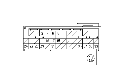 Измерьте напряжение между клеммой № 38 разъема А (39P) блока SRS и "массой" кузова, и между клеммой № 39 и "массой" кузова. Напряжение должно быть не более 1 В.