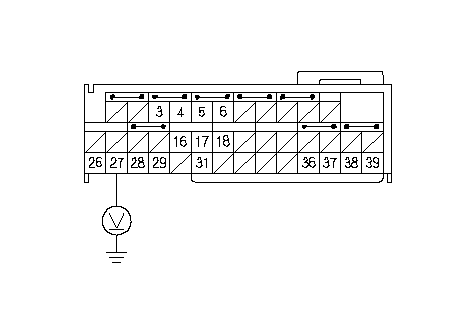 Измерьте напряжение между клеммой № 27 разъема А (39Р) блока SRS и "массой" кузова. Должно быть напряжение аккумулятора.
