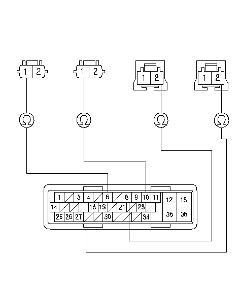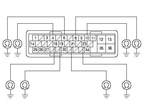 Проверьте неразрывность цепи между соответствующими клеммами +B и GND датчика частоты вращения колеса и 36Р разъем блока управления-модулятора ABS (см. таблицу).