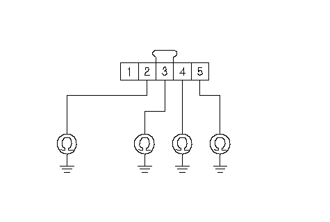 Проверьте непрерывность цепи между "массой" кузова и клеммами № 2, № 3, № 4 и № 5 5Р разъема датчика угла поворота рулевого колеса по отдельности.