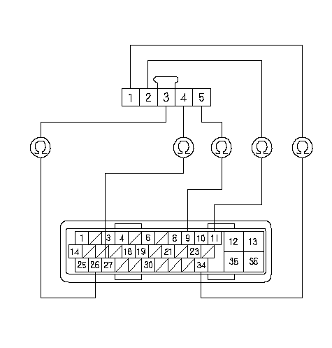 Проверьте непрерывность соединения между клеммой 36Р разъема блока управления-модулятора VSA и клеммой 5Р разъема датчика угла поворота рулевого колеса по отдельности.