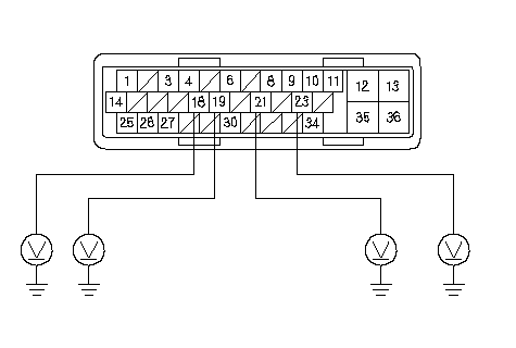 Измерьте напряжение между "массой" кузова и соответствующими клеммами разъема 36Р блока управления VSA (смотрите таблицу).