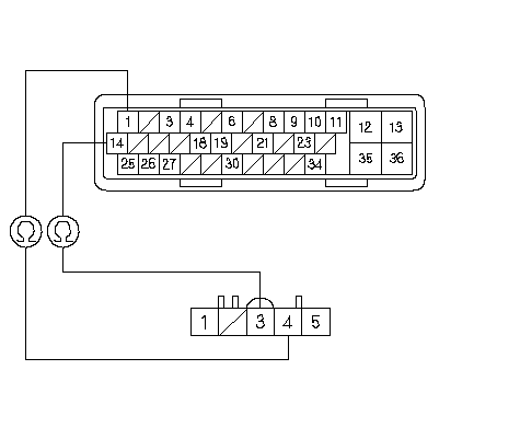 Проверьте неразрывность цепи между клеммой 36P разъема блока управления-модулятора VSA и клеммой 5P разъема датчика курсового угла/поперечного и продольного ускорения автомобиля (см. таблицу)