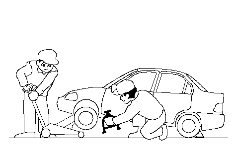 Работайте безопасно и уделяйте работе все ваше внимание, не отвлекаясь. При необходимости поднять передние или задние колеса надежно заблокируйте колеса, стоящие на земле. Как можно чаще общайтесь с коллегами, если работа требует участия двух или более человек. Не запускайте двигатель, пока не будет обеспечена хорошая вентиляция помещения мастерской или зоны проведения работ.
