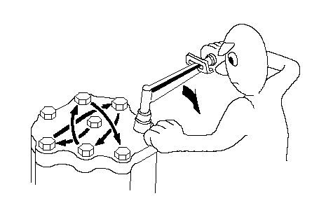 При затяжке нескольких болтов или гаек начинайте с центрального крепежного элемента либо имеющего больший диаметр и затягивайте их в направлении "крест-накрест" в две или более стадий.