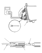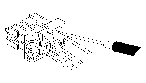 При проверке клемм разъема любого управляющего модуля(ей) или элемента(ов) необходимо, не нажимая, скользить острым штырем тестера со стороны провода внутрь разъема, пока штырь не коснется клемммы, соединенной с концом провода.
