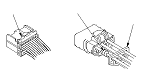 При проверке разъемов подводите штырь тестера для контакта с клеммой со стороны разъема для разъемов жгутов электрических проводов в моторном отделении.