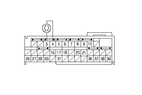 Измерьте сопротивление между клеммами № 3 и № 4 разъема А (39Р) блока SRS. Значение должно быть менее 1,0 Ω.