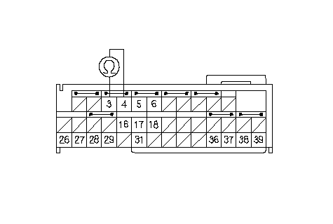 Измерьте сопротивление между клеммами № 3 и № 4 разъема А (39Р) блока SRS. Сопротивление должно быть 0 - 1,0 Ω.